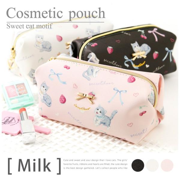 化粧ポーチ コスメ 美容 手書き イラスト 猫 筆箱 ペンケース 小学生 中学生 女の子ねこ柄プリントコスメポーチ ミルク Buyee Buyee 日本の通販商品 オークションの代理入札 代理購入